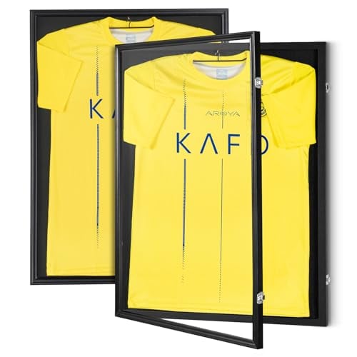 VEVOR 2 st displayramfodral i jersey, 59,2 x 79,2 x 3,8 cm, stor låsbar sportjersey skugglåda med 98 % UV-skydd PC-glas och hängare, för baseball basket fotboll hockeyskjorta och uniform
