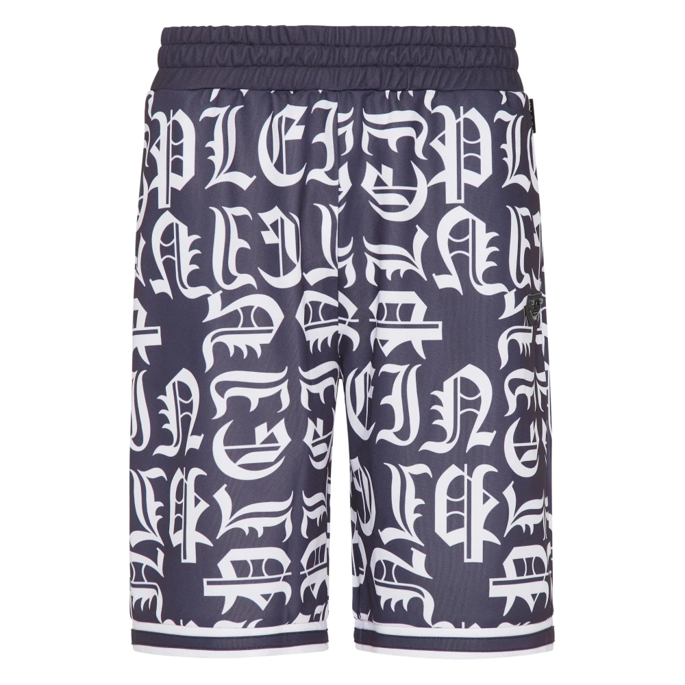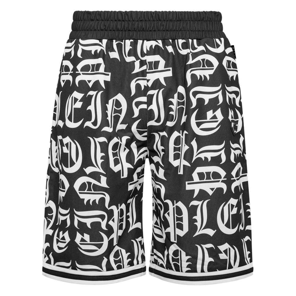 Philipp Plein, Shorts , Herr, 4Xl, Läder, Jogging Basket Shorts Gothic Plein