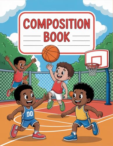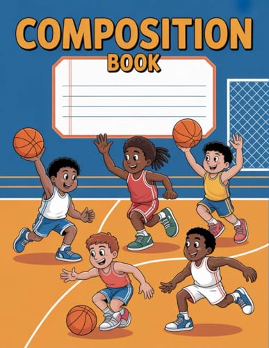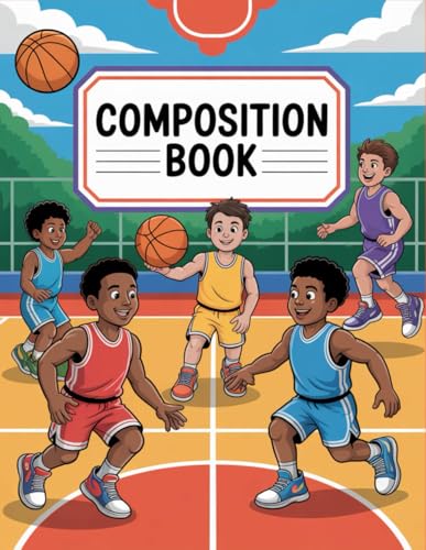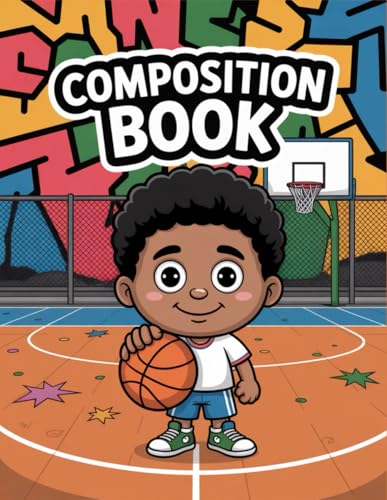 Basketball Court On Dark Theme Composition Book: 120 Pages, with Cartoon Cover Design, great for Drawing, Journaling, School Notes, Girls, Kids, ... for Drawing, Journaling, School Notes, Girls,