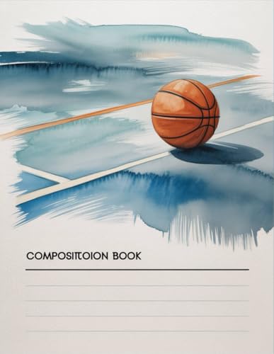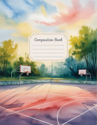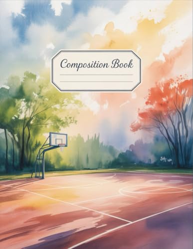 Basketball Court On Dark Theme Composition Book: 120 Pages, with Watercolor Cover Design, great for Creative Writing, Drawing, Ideas, Kids, Girls, ... great for Creative Writing, Drawing, Ideas, K