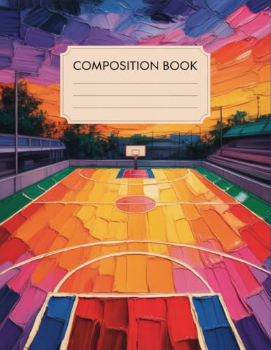 Basketball Court On Dark Theme Composition Book: 120 Pages, with Oilpainting Cover Design, suitable for Journaling, Creative Writing, Girls, Kids, ... for Journaling, Creative Writing, Girls, K