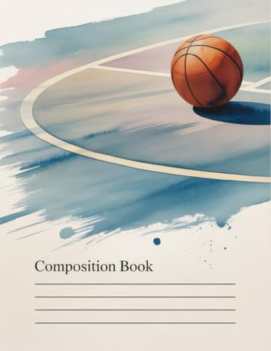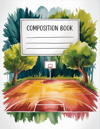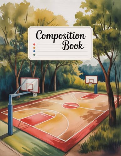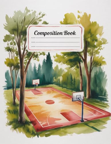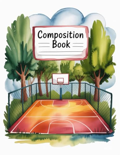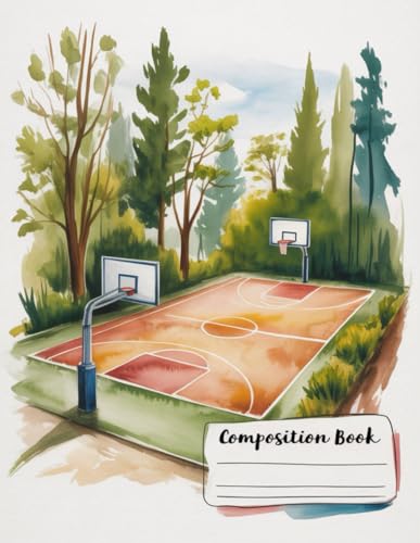 Basketball Court On Dark Theme Composition Book: 120 Pages, with Watercolor Cover Design, great for Journaling, Creative Writing, School Notes, ... Cover Design, great for Journaling, Creative