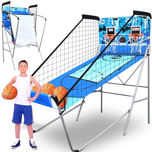 SereneLife Arcade Basketball Game Indoor Shootout, Heavy Duty Foldable Dual Hoop with Electronic Shot Scoreboard, Play Timer, Förmonterad ram, blå