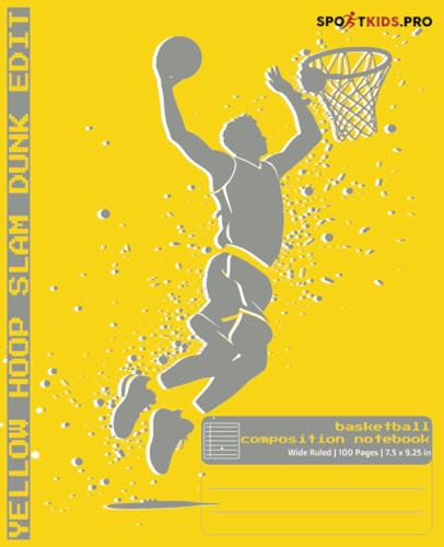 Basketball Composition Notebook for Kids: Yellow Hoop Slam Dunk Edit: For Boys and Girls, For Home and School, Wide Ruled with Field, 100 Pages, 7.5 x 9.25 in