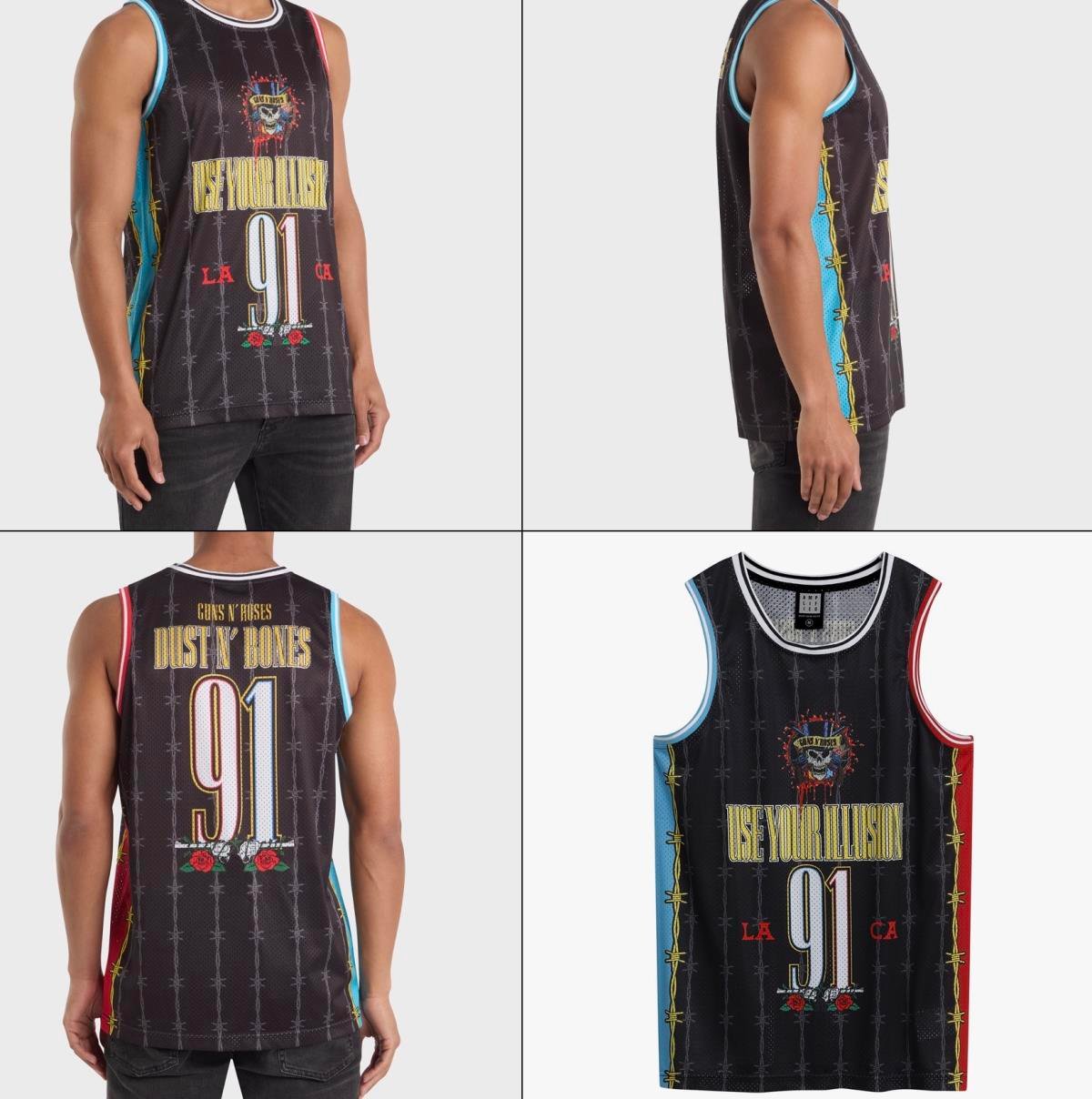 Gun n Roses: Dust n Bones Black Basketball Jersey Xx Large