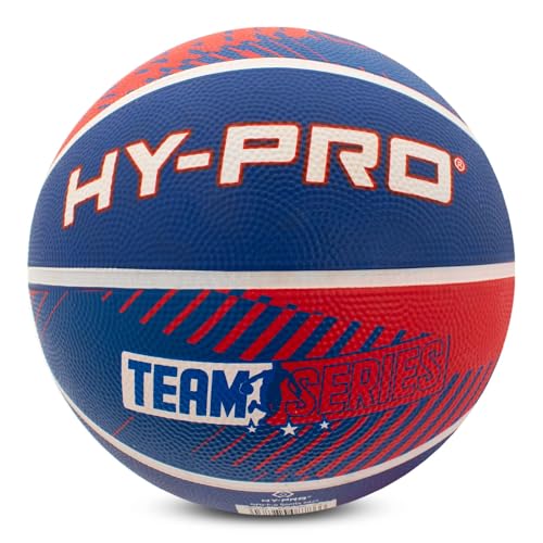 Hy-Pro Basketboll – storlek 7, lagserie, rödblå, basket med slitstarkt gummimaterial, högt hopp, kofflat grepp för förbättrad kontroll – fritidsbasketboll