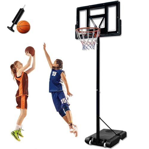 UISEBRT basketkorg inkl. basketboll pump för barn vuxna basketstativ bärbar med hjul justerbar höjd 230–305 cm utomhus basketring basketanläggning