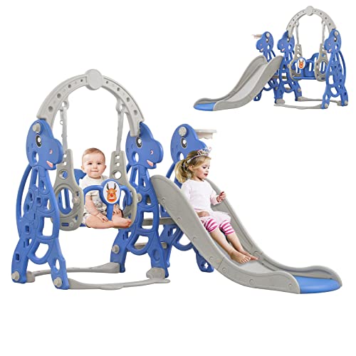 UISEBRT Barnrutschkana inomhus från 1 år, småbarn rutschkana med basketkorg och gunga, barn rolig trädgårdsrutschkana, inomhus och utomhus, för från 1–5 år (4-i-1)
