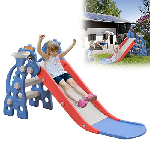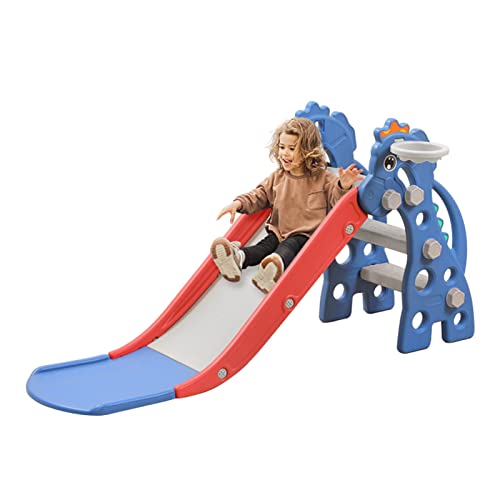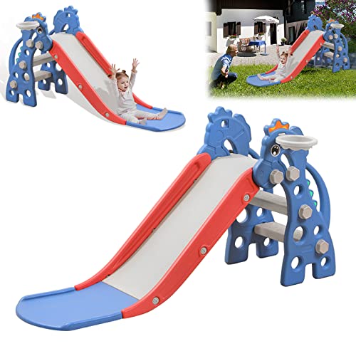 LZQ Fristående rutschkana för barn inomhus från 1 år, leksaksrutschkana barn lekplats med basketkorg, småbarn rutschkana utomhus tillverkad av PP och PE plast