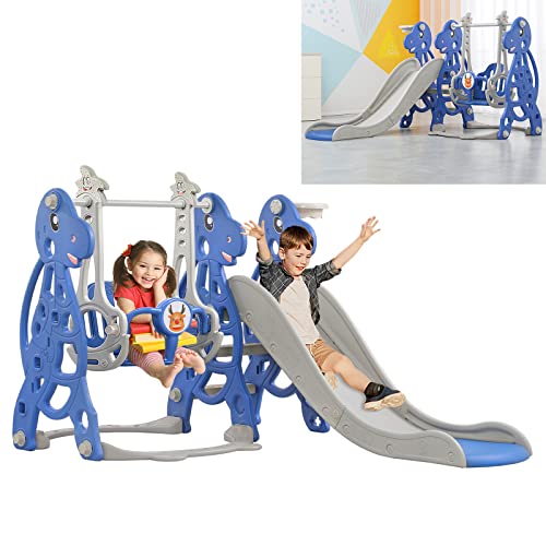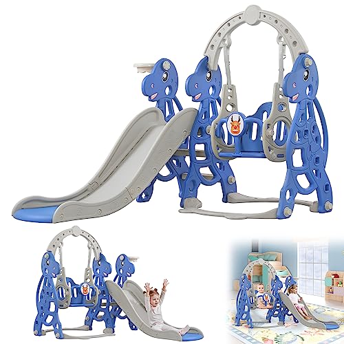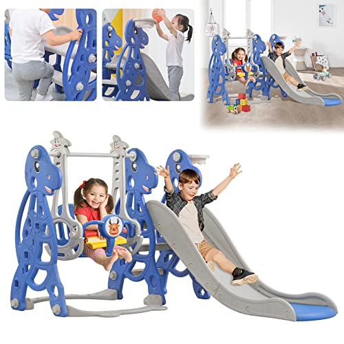 JNGLGO Barnrutschkana och gunga, 3-i-1 rutschkana med basketkorg, klättring rutschkana set, perfekt för utomhus-/inomhuslek