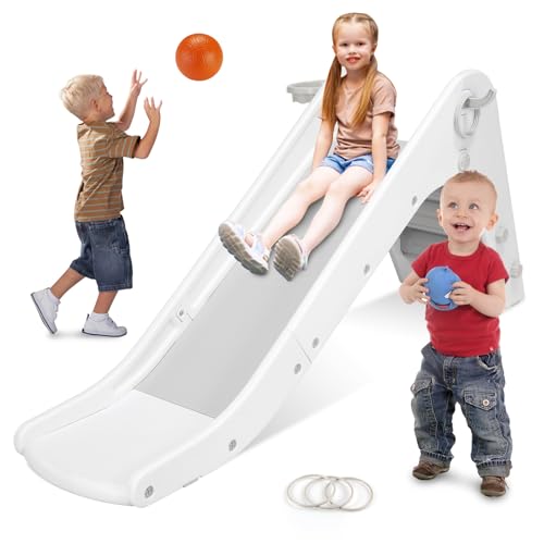 UISEBRT Barnrutschkana inomhus från 1 år, småbarn rutschkana med basketkorg, barn rolig trädgårdsrutschkana, inomhus och utomhus, för från 1–5 år (3-i-1)