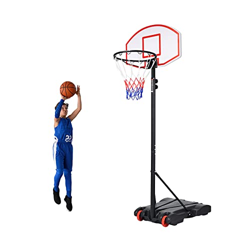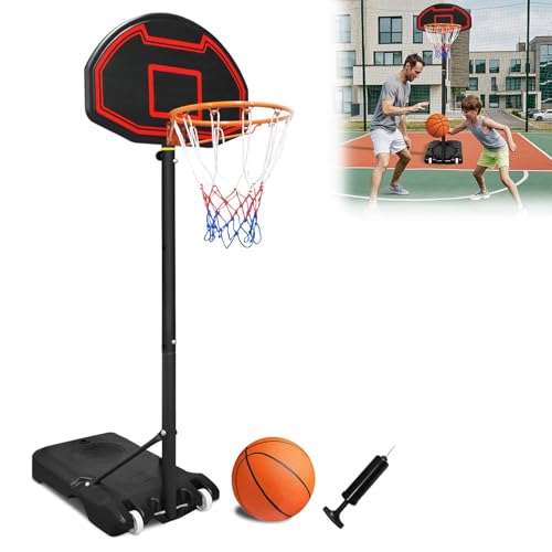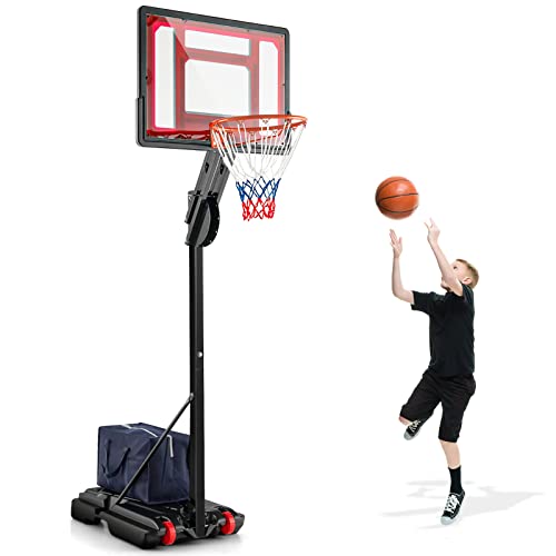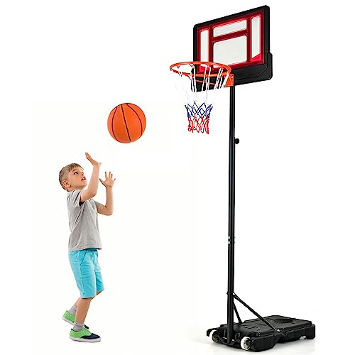 GOPLUS Basketkorg, utomhus, för barn, tonåringar, 90–210 cm justerbar, basketstativ, bärbar med hjul, basketkorg med stativ och 76 x 50 cm bakvägg (röd)