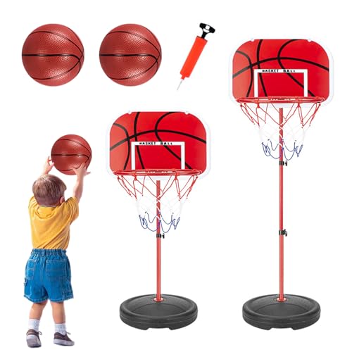 HYES Basketkorg för barn 3–5, justerbar höjd basketstativ, mini basketkorg inomhus utomhus med 4 bollar och resultattavla, basketleksak, presenter för pojkar flickor (114–139 cm)