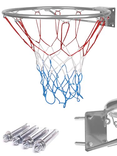 Aoneky Basketring med Dubbel Fjäder och Nylon basketnät - Väggmonterad Basketkorg Standardstorlek 45 cm för Träning Ersättning Utomhus Inomhus, 18 mm Massivt Stålrör, Lämplig för Vuxna och Barn