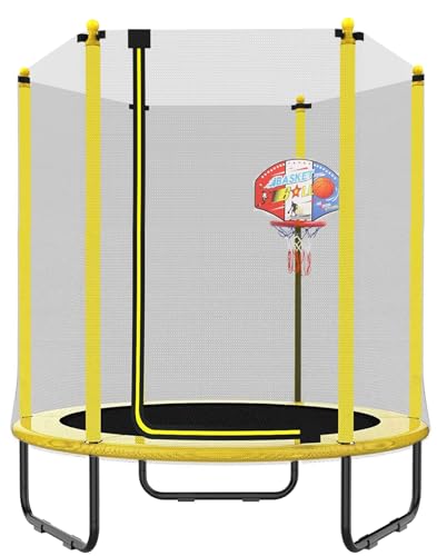 PILIN Barnstudsmatta trädgårdsstudsmatta med säkerhetsnät och basketring, max. lastkapacitet 50 kg utomhus- och inomhusbruk barnstudsmatta Ø 150 cm födelsedagspresent för barn