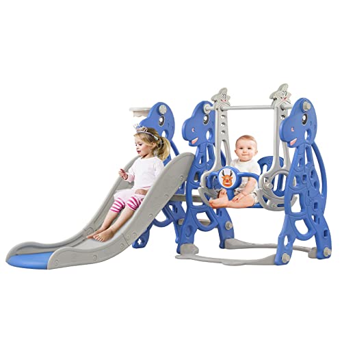 HENGMEI 4-i-1 klättrar- och gungset med rutschkana och basketring - för barn i åldrarna 1 till 3 år - användning i trädgård, utomhus och inomhus - blå, 175