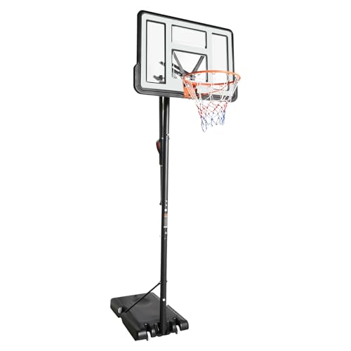Basketkorg utomhus, korghöjd från 170 till 305 cm justerbar, basketkorg med hjul, vatten/sand, fyllbar, basketstativ bärbar, träning basketring för barn och vuxna (vit)