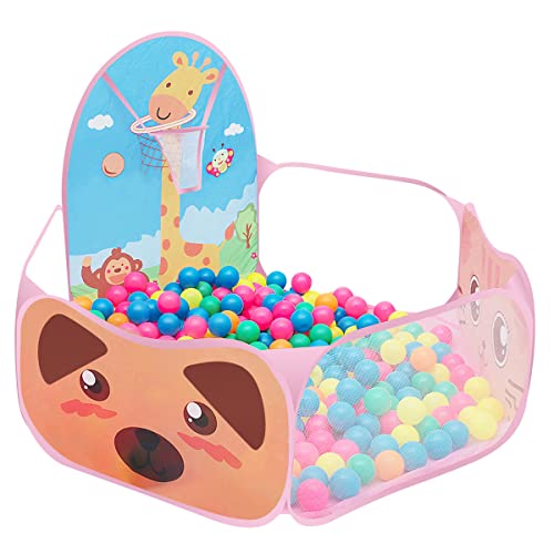 Ruspela Barn pop up hopfällbar tecknad lek tält grop pool med basketring rosa