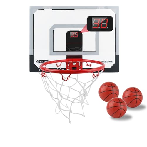 TEUVO Mini basket ringleksaker för barn ålder 8, 9, 10, 11, 12 år, inomhus, basketring över dörren med 4 bollar för sovrum, monterad utomhus, miniring på dörr, sport, spel, leksak, gåvor för pojkar