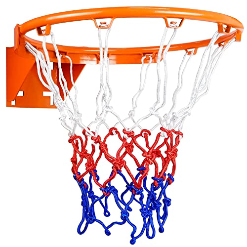 Aoneky Basketring med Dubbel Fjäder och Nylon basketnät - Väggmonterad Basketkorg Standardstorlek 45 cm för Träning Ersättning Utomhus Inomhus, 18 mm Massivt Stålrör, Lämplig för Vuxna och Barn