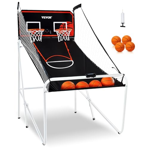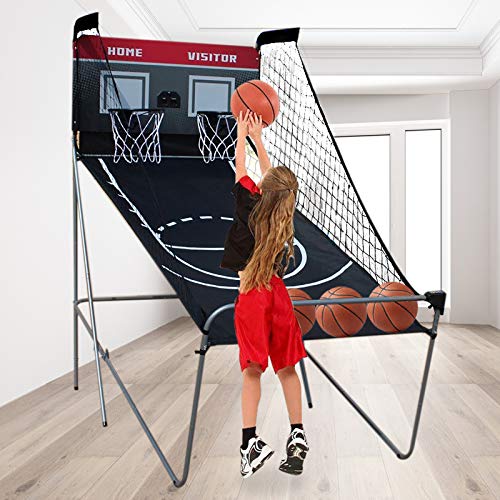 SereneLife Arcade basketspel, vikbar enkel/dubbel basketkorg, elektronisk punktvisning, robust konstruktion, inomhus/utomhus – sportspel för barn, familjer och basketfans