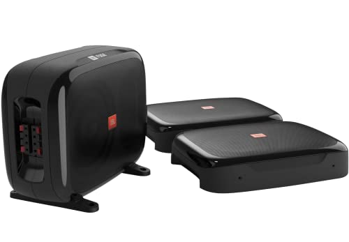 JBL FUSE Dubbel subwoofer bilset – 600 watt 60 watt – separat som 2 platta baslådor för undersäte eller tillsammans som en vertikal dockad baslåda i bagageutrymmet, svart