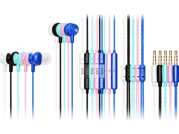 CBGGQ Hörlurar Heavy Bass Stereo Hörlurar Hörlurar Bullerisolerande trasselfria headset i öron Hörlurar med fjärrkontroll & mikrofon, för iOS och Android Laptops, Spel (Svart+Vit+Rosa + Grön 4-pack)