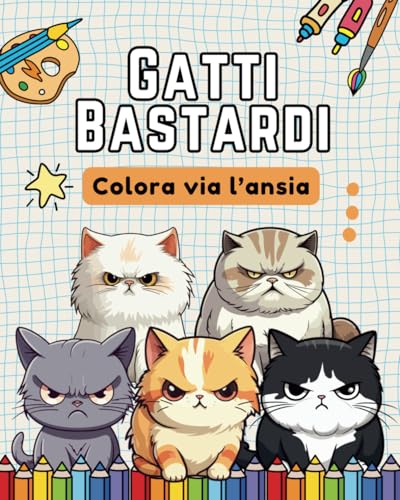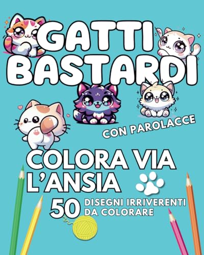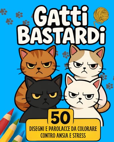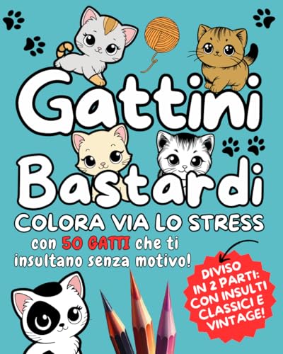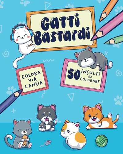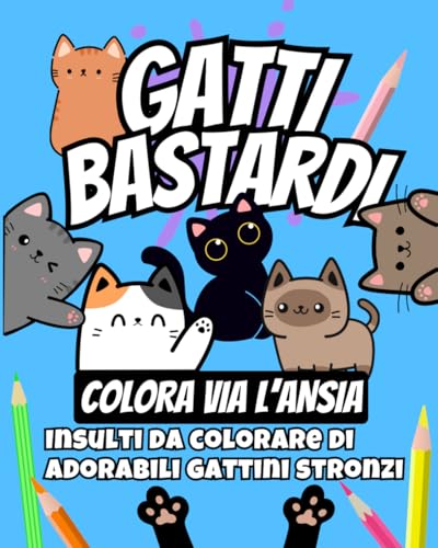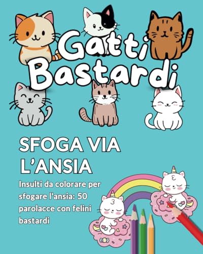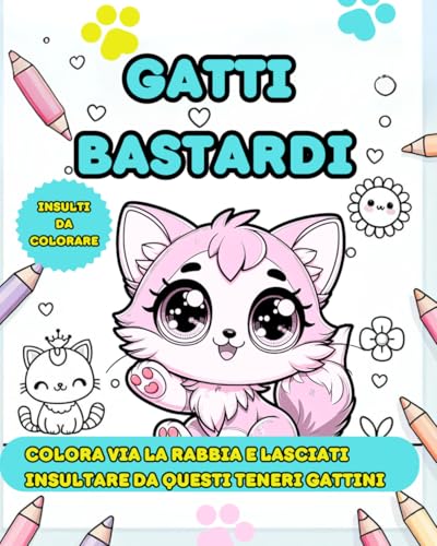 GATTI BASTARDI e insolenti: Colora via lo STRESS con 50 insulti e parolacce, un libro da colorare per adulti dove gatti kawaii ti aiutano a ritrovare il BUONUMORE e a ridere dei problemi quotidiani