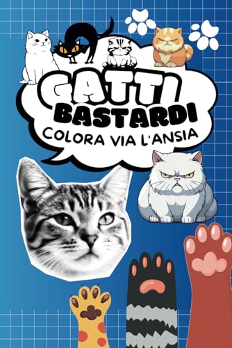 GATTI BASTARDI Colora via l'ansia: Album da colorare per adulti divertenti e antistress , insulti , maleducati