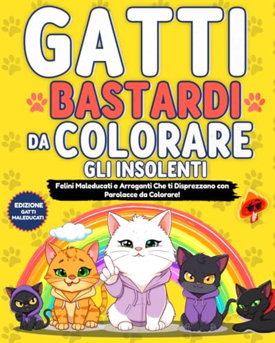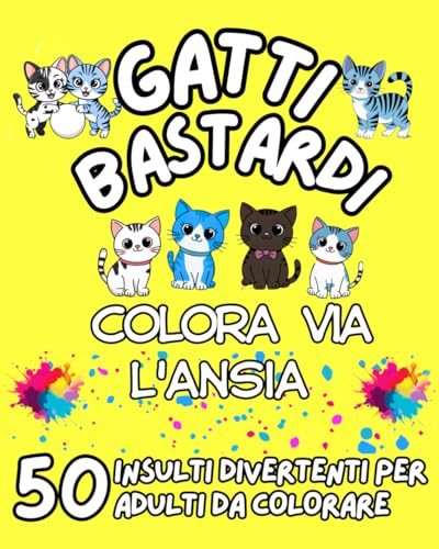 GATTI BASTARDI DA COLORARE: Colora via l'ansia , gattini Maleducati insulti , Regali Originali collega colleghi divertenti