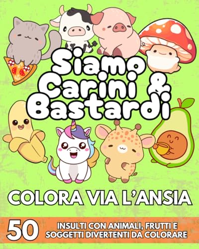 Siamo Carini & Bastardi: Colora Via L'ansia. 50 Insulti con Animali, Frutti e Soggetti Divertenti da Colorare