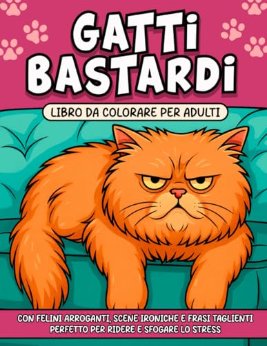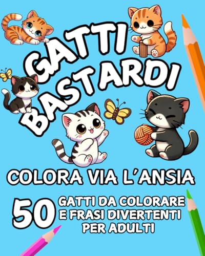 GATTI BASTARDI: Colora via l'Ansia con 50 Insulti Divertenti da Colorare per Adulti
