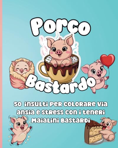 Porco bastardo: 50 insulti per Colorare via ansia e stress con i teneri maialini bastardi