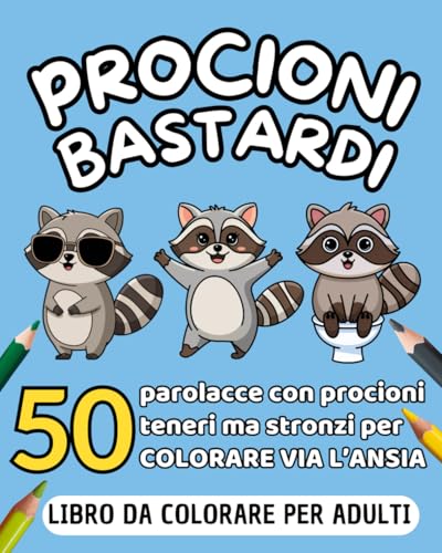 PROCIONI BASTARDI: libro da colorare per adulti con 50 parolacce con procioni teneri ma stronzi per colorare via l'ansia