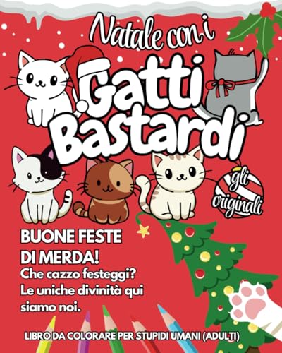 NATALE CON I GATTI BASTARDI - GLI ORIGINALI: BUONE FESTE DI MERDA! Che cazzo festeggi? Le uniche divinità qui siamo noi. Libro da colorare per stupidi umani(adulti)
