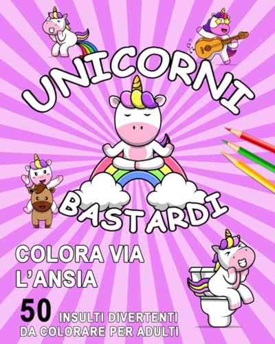 UNICORNI BASTARDI: Colora via l’ansia: 50 insulti divertenti da colorare per adulti