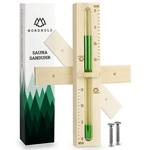 15 minuter bastu sandklocka av 100 % nordisk täthet – robust glas och värmebeständig – kontrastfärg grön + 2 skruvar i rostfritt stål – högkvalitativa bastutillbehör – testa 60 dagar riskfritt – bastu