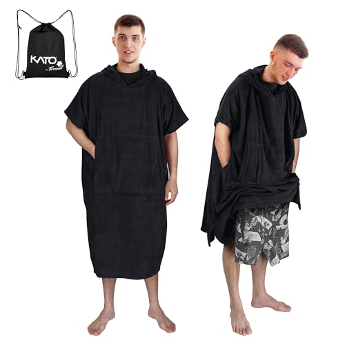 Kato Tirrinia Surf Poncho omklädningshjälp strand för kvinnor och män, badponcho i mikrofiber med huva och ficka, handduk poncho som flytthjälpmedel för surfare simning camping bastu bad, S/M
