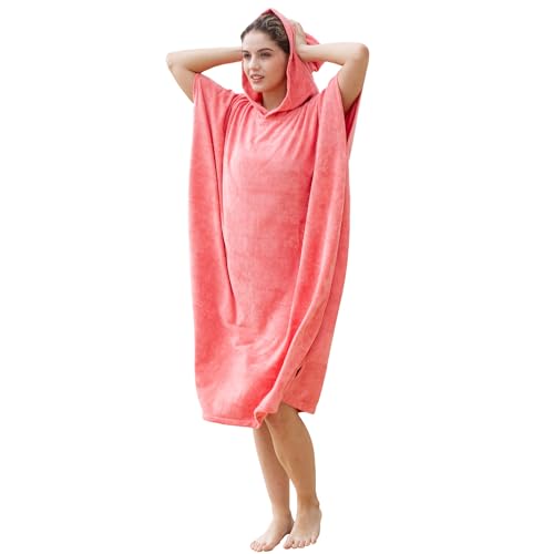 Kato Tirrinia mikrofiber surfponcho handduk klänning badponcho kvinnor män, lång surf poncho bastu badrock omklädning strand flytthjälp kvinnor män, snabbtorkande strand huva handduk, rosa