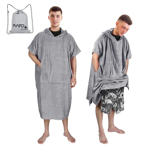 Kato Tirrinia Surf Poncho omflyttningshjälp strand för kvinnor och män, badponcho i mikrofiber med huva och ficka, handduk poncho som flytthjälpmedel för surfare simning camping bastu bad, grå