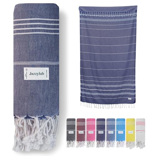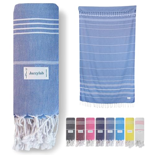 JEMIDI Hammam-handduk – lätt, snabbtorkande, mikrofiber, XL, stor handduk för vuxna – för strand, bastu, resor eller picknick – stor turkisk bomullsbadhandduk – blå och röd