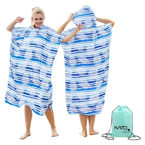 Kato Tirrinia Surf Poncho omflyttningshjälp strand för kvinnor män, badponcho med huva absorberande vindtät, handduk poncho som flytthjälpmedel för surfare simning camping bastu bad, blått blad
