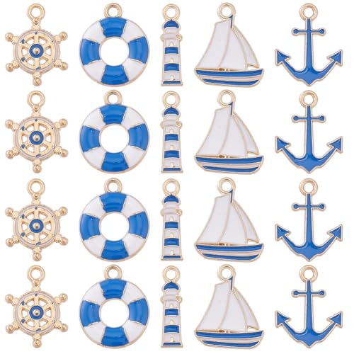 SUNNYCLUE 1 låda 60 st 5 stilar nautiska berlocker ankare berlocker storlegering hav blått hav sjöman fartyg båt marinblå fyr sommarberlock för smyckestillverkning berlocker kvinnor gör-det-själv