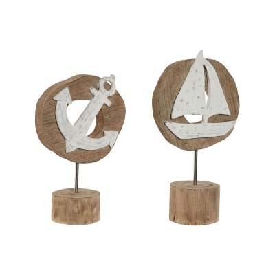 Prydnadsfigur Home ESPRIT Vit Naturell Ankare Båt Medelhavs 19 x 10 x 38 cm (2 antal)