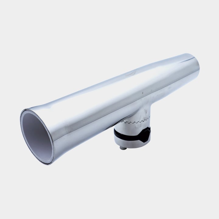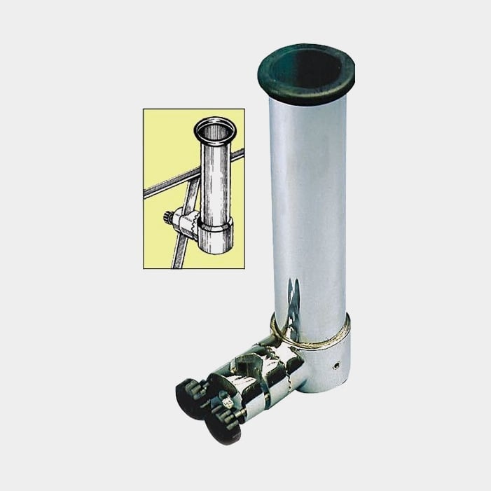 Spöhållare för båt (grabbräcke / reling), för 1 fiskespö, passar rör Ø20 - 30 mm, vinkelbar, rostfritt stål AISI 316, silver