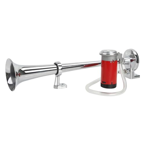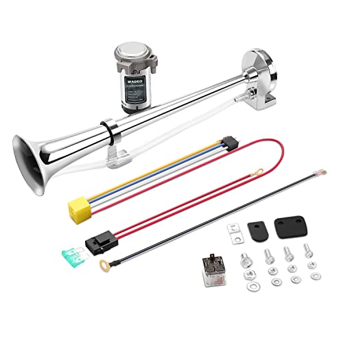 WADEO lastbilshorn 12 V 150 dB, lufthorn med kompressor, krom zink enkel trumpet lastbilshorn med kompressor, kraftfullt, superhögt, för lastbil, båt, SUV, tåg (silver)