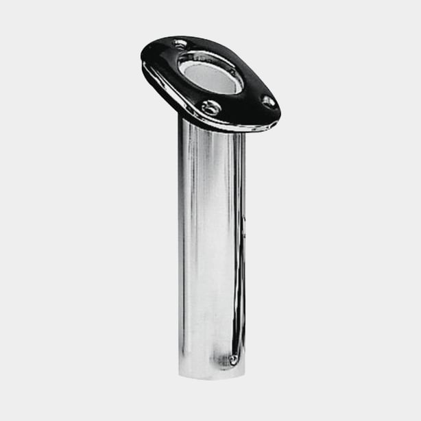Spöhållare för båt (infälld), för 1 fiskespö, med vinklad fläns + lock, rostfritt stål, silver