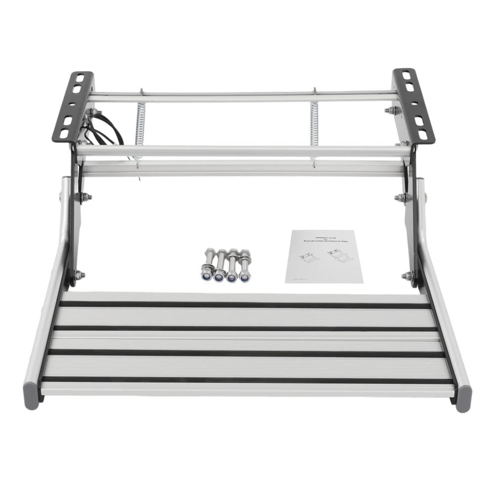 Aluminium instegstrappa - Manuell fällbar - 12 V LED‑ljuslist - För husbil, husvagn, båt, yacht - Halkskydd - Silver