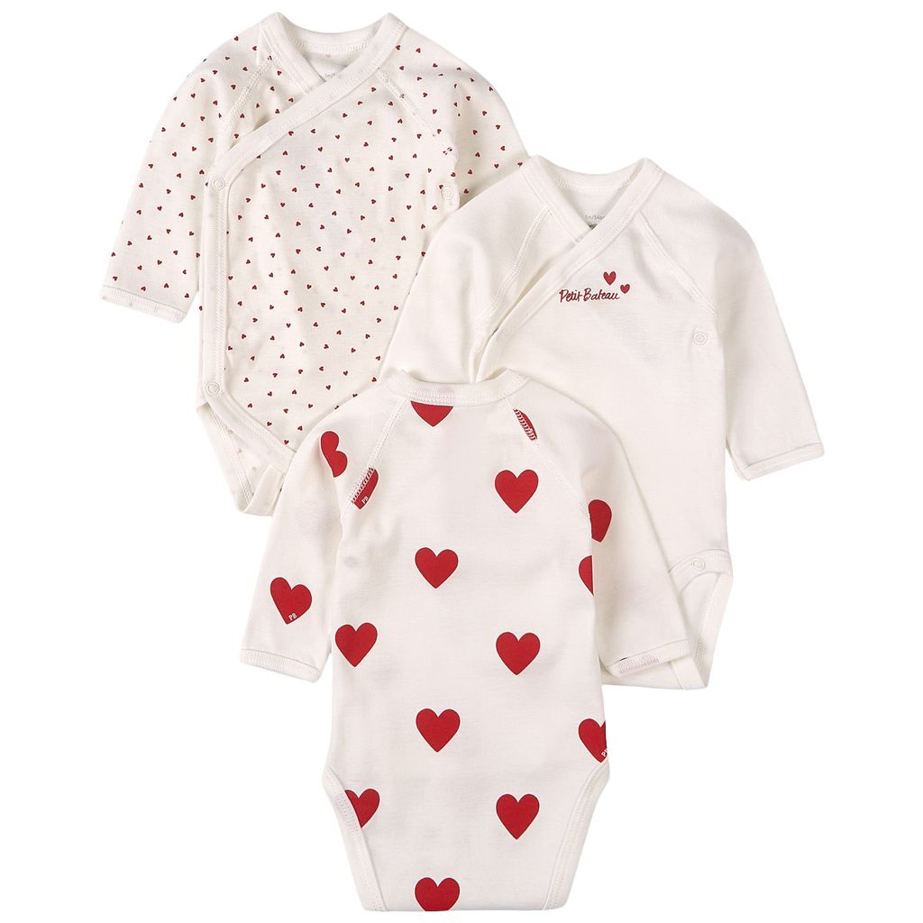 Petit Bateau 3-Pack Heart Print Baby Bodies Vita 1 months Vit Hjärtan 1 månader kvinna