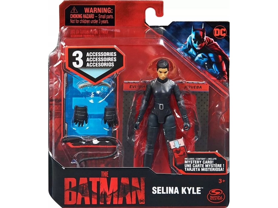 DC Comics 6061622 MOV 4 tum SelinaKyle S1 V1 10 cm Selina Kyle actionfigur med 3 tillbehör och mystikort, Batman-filmsamlarobjekt barnleksaker för pojkar och flickor från 3 år